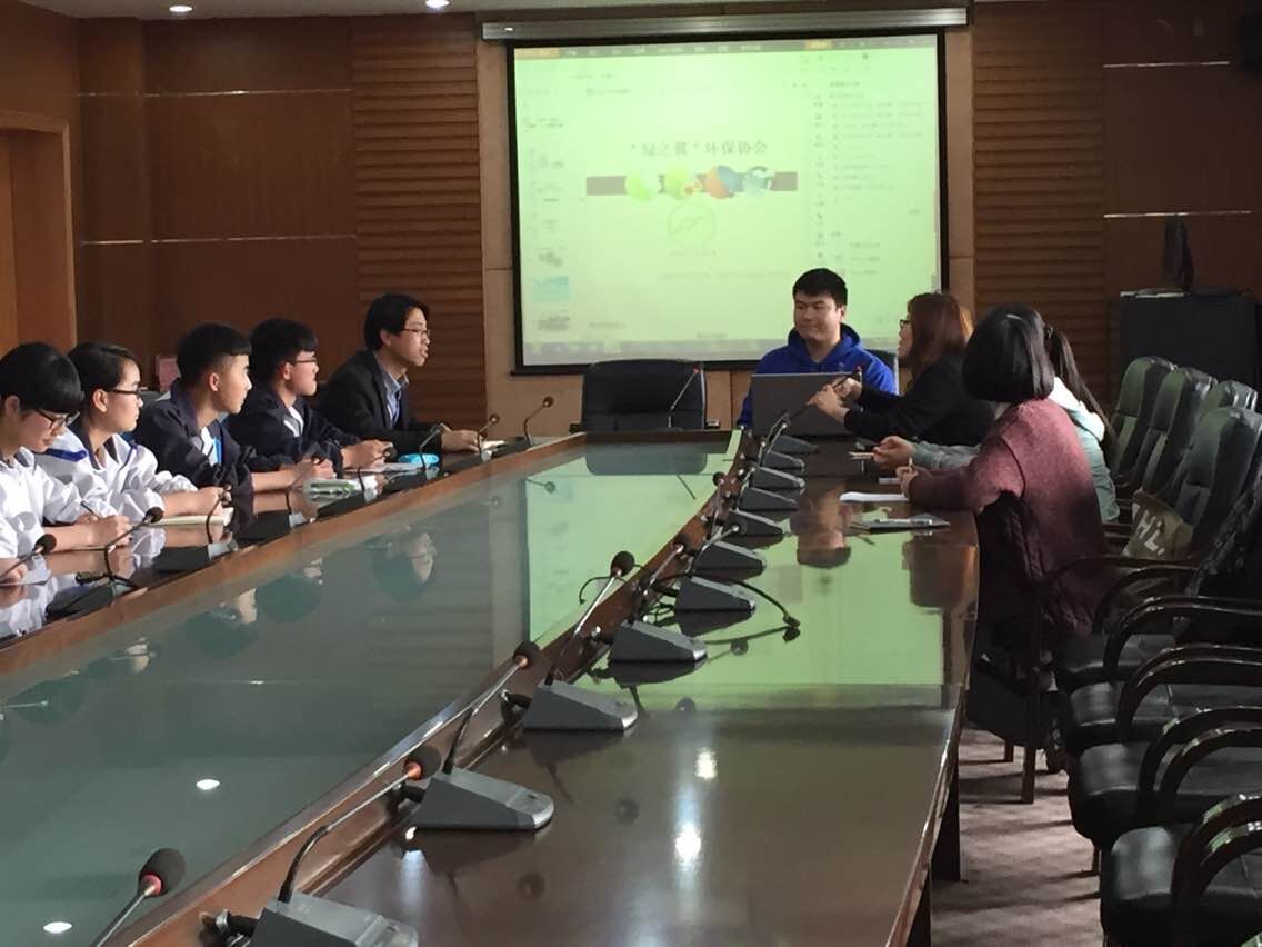 4月15日,91制片 "绿之翼"环保协会于下沙校区行政楼422会议室与余杭中学绿之翼环保协会开展了社团交流会。出席本次社团交流会的有"绿之翼"环保协会指导老师倪雅老师、余杭中学副校长朱老师、"绿之翼"环保协会会长、副会长及部分干事、余杭中学绿之翼环保社团会长及成员等。