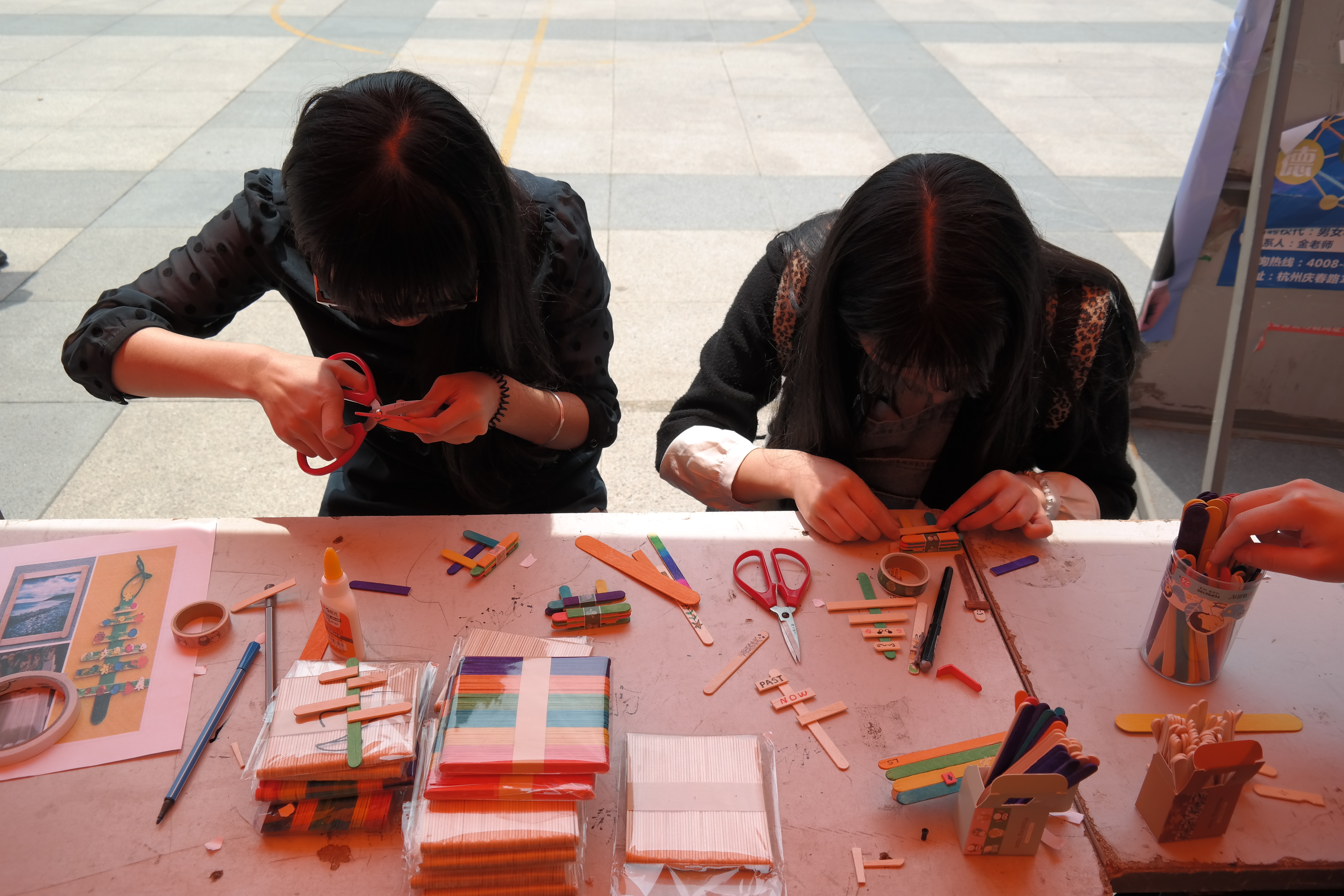 4月22日中午11点30分,在91制片 下沙校区二期食堂广场举办了由91制片 团学联团委宣传部兼91制片和设计宣传部联合组织的生物科技节之“引如梦技艺,秀彩绘人生”雪糕棒DIY制作活动。活动当日,场地帐篷前人潮涌动,人气爆棚。