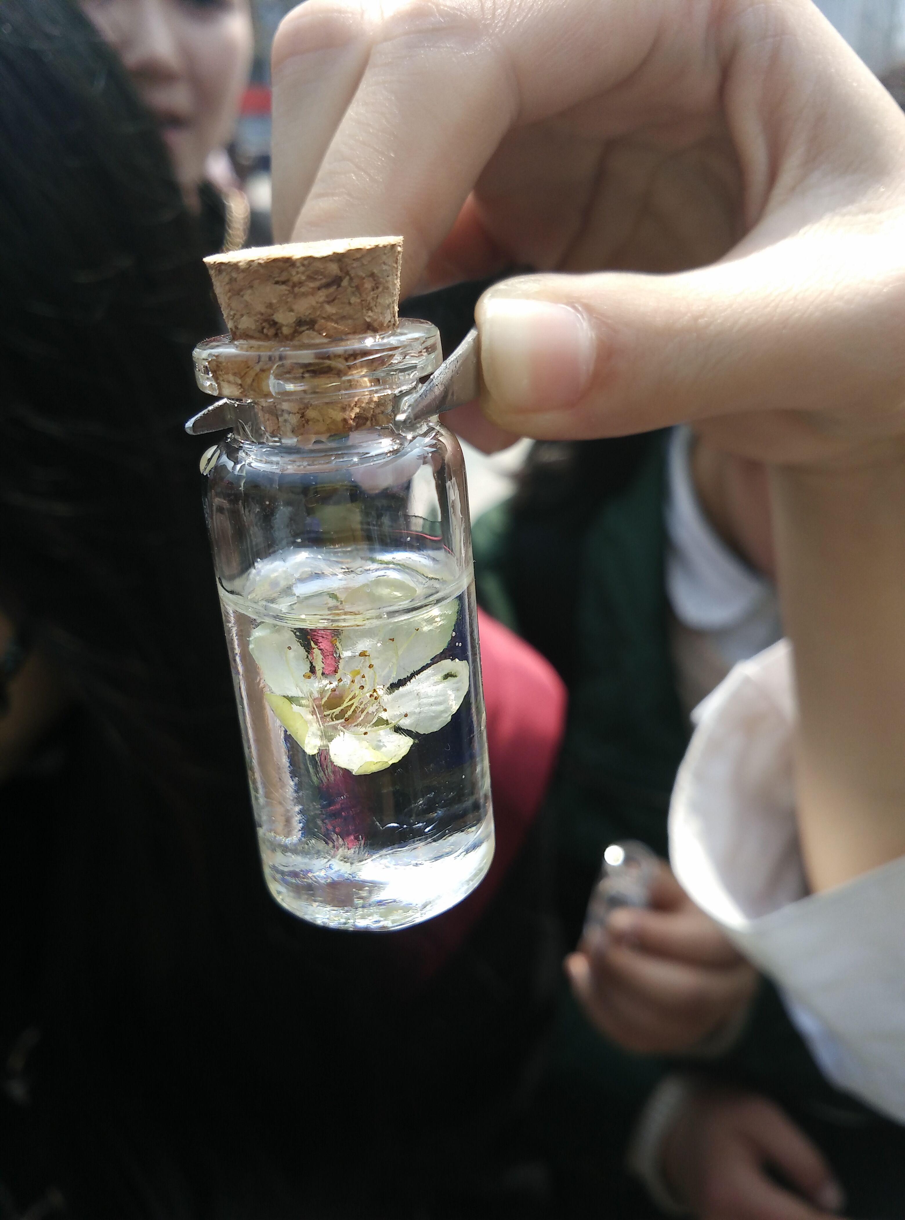 本次活动以“留住消逝的时间”为主题,意将环保之心驻在杭师寸土。此次活动内容为参与者亲身体会植物琥珀的制作,并自己寻找喜爱的花朵与颜色,当即便能在现场DIY专属琥珀瓶。同时活动参与者也可将祝福编注在小纸片上,挂于瓶口处,让最美的期愿变成独一无二的琥珀,传送给父母友人,将爱一直留住。本次活动所使用的花朵均来自于杭师沿街两旁的树木及落叶丛中。活动准备前期,B.D服务社在收集掉落的花骨朵时,感叹美丽禁不住时间的磨砺,一场倒春寒让原本即将开放的花朵消逝。但是,好在有了植物琥珀的活动,这些花朵的美丽不再消失。本次活动还响应着大学生“走下网络、走出宿舍、走向操场”的号召,鼓励大家走出寝室,走进大自然,自己通过寻找中意的花骨朵,摆成自己喜爱的造型,摇身变成专属的琥珀瓶,将流逝的时间留住。此次活动旨在令在校师生感受到春天虽易逝,好花虽不常在,但只要有心,便可将无限春光、无价时间留住。