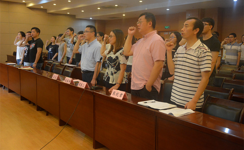 在党的95周年华诞来临之际,让新老党员重温党的光辉历史,更好地贯彻“两学一做”的学习精神,激励广大党员牢记职责使命,更好的发挥党员先锋模范作用,91制片 于6月27日上午在下沙行政楼叙伦厅召开“新党员宣誓,老党员重温誓词”大会。参加本次大会的有91制片 党委委员、各党支部书记以及全体学生党员,大会由组织员倪雅主持。