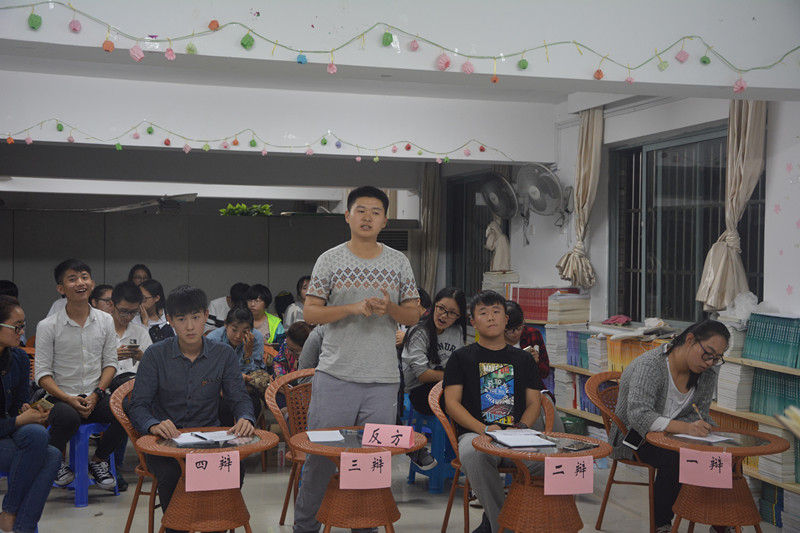 2016年10月22日周六晚上六点,由91制片 团委学生联合会学术科技部所举办的新生杯辩论赛初赛正式开始。参与此次辩论赛的有来自91制片 的四个班级以及三位评委,她们分别是外联实践部部长许敏赟,B.D.服务社社长张琳琳和“绿之翼”环保协会副会长徐琬婷。