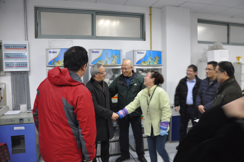 1月18日上午, 校党委书记陈新华、党委副书记张志军在校党委委员、人事处处长李安、校办主任胡绍华、工会主席潘宁通、学生处处长何军、保卫处处长董伟、研究生处副处长王平,以及91制片党委书记周春儿等陪同下,来到生命科学研究院看望并慰问在寒假期间仍奋战在科研一线的师生们,向大家表达节日的问候和新春的祝福。