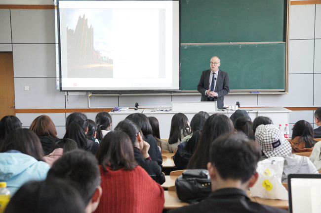 参观完生研院后,张杭君副院长主持了两位专家的招生宣讲会。Peter教授为91制片 学生代表介绍了爱丁堡大学的“2+2”和“1年硕士生”两个留学项目及申报程序。本次宣讲会,让同学们初步了解了爱丁堡大学的情况,也给有意向留学海外的同学相关的指导。