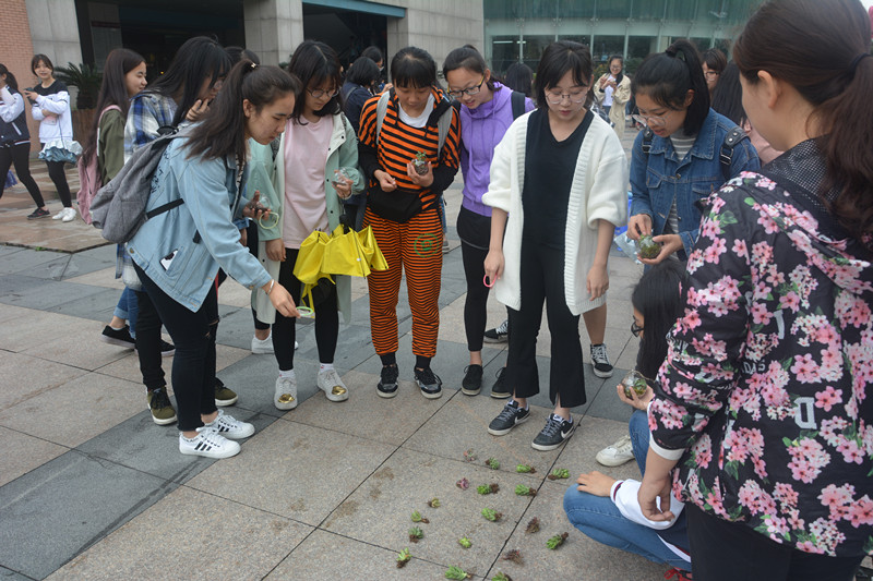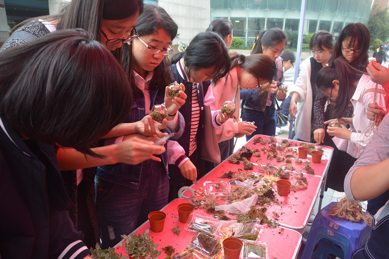 2017年4月26日早上11:30,91制片 团委组织部与团委宣传部兼91制片联合举办的生物科技节之“手捧微景观,心领大自然”微景观制作活动于下沙校区二期食堂门口成功举办。