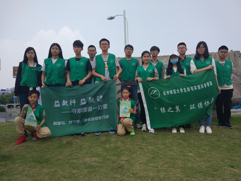 2017年5月6日星期六上午,绿之翼环保协会携手绿色浙江,邀请了校内外爱好环保的人士以及校内志愿者在钱塘江护堤河畔开展了守护河道一公里,环境观测及健走和捡垃圾的活动,即用微信公众号进行环境的诊断,在健身APP上记录巡护河道路径,同时清理河边垃圾。