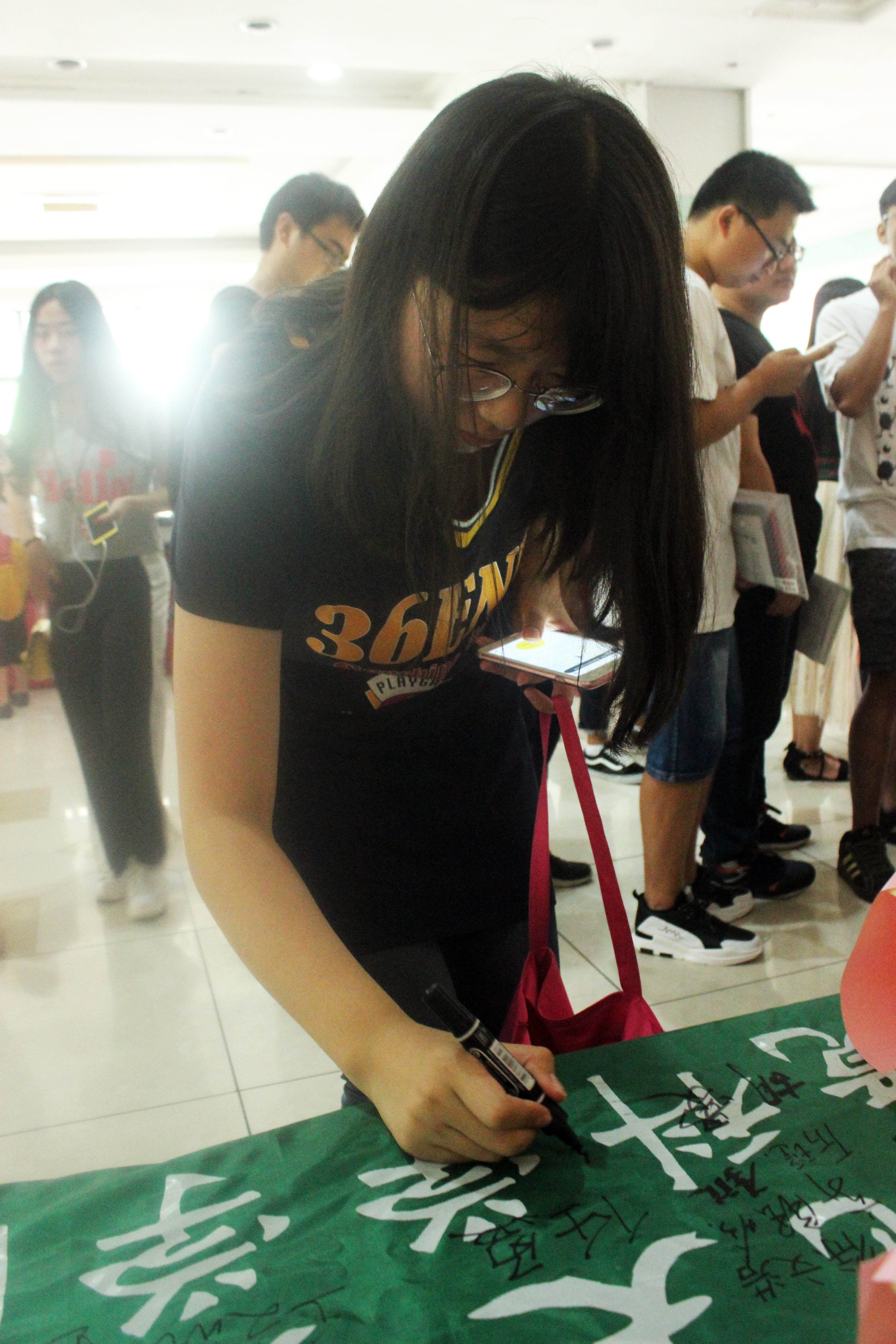 留念——除了“绿植领养”,在食堂91制片 还设置了“签院旗”活动,院旗作为91制片 的标志,将会是大家四年时光里重要的一部分,新生在跨入大学之际,将自己的名字签于院旗上,留下自己的姓名,留下自己的期许,也留下踏入91制片 的第一笔。