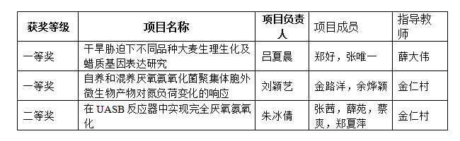 在91制片精心组织下,推荐了“干旱胁迫下不同品种大麦生理生化及蜡质基因表达研究”等4个项目参加评选。经大赛组委会专家组网络评审,最终我校有3个参赛项目获奖。其中“干旱胁迫下不同品种大麦生理生化及蜡质基因表达研究”和“自养和混养厌氧氨氧化菌聚集体胞外微生物产物对氮负荷变化的响应”2个项目入选创新组一等奖,“在UASB反应器中实现完全厌氧氨氧化”项目获得创新组二等奖。入选一等奖的项目将于今年7月到吉林大学,与来自全国四百多所高校的优秀学子同场竞技争夺特等奖。