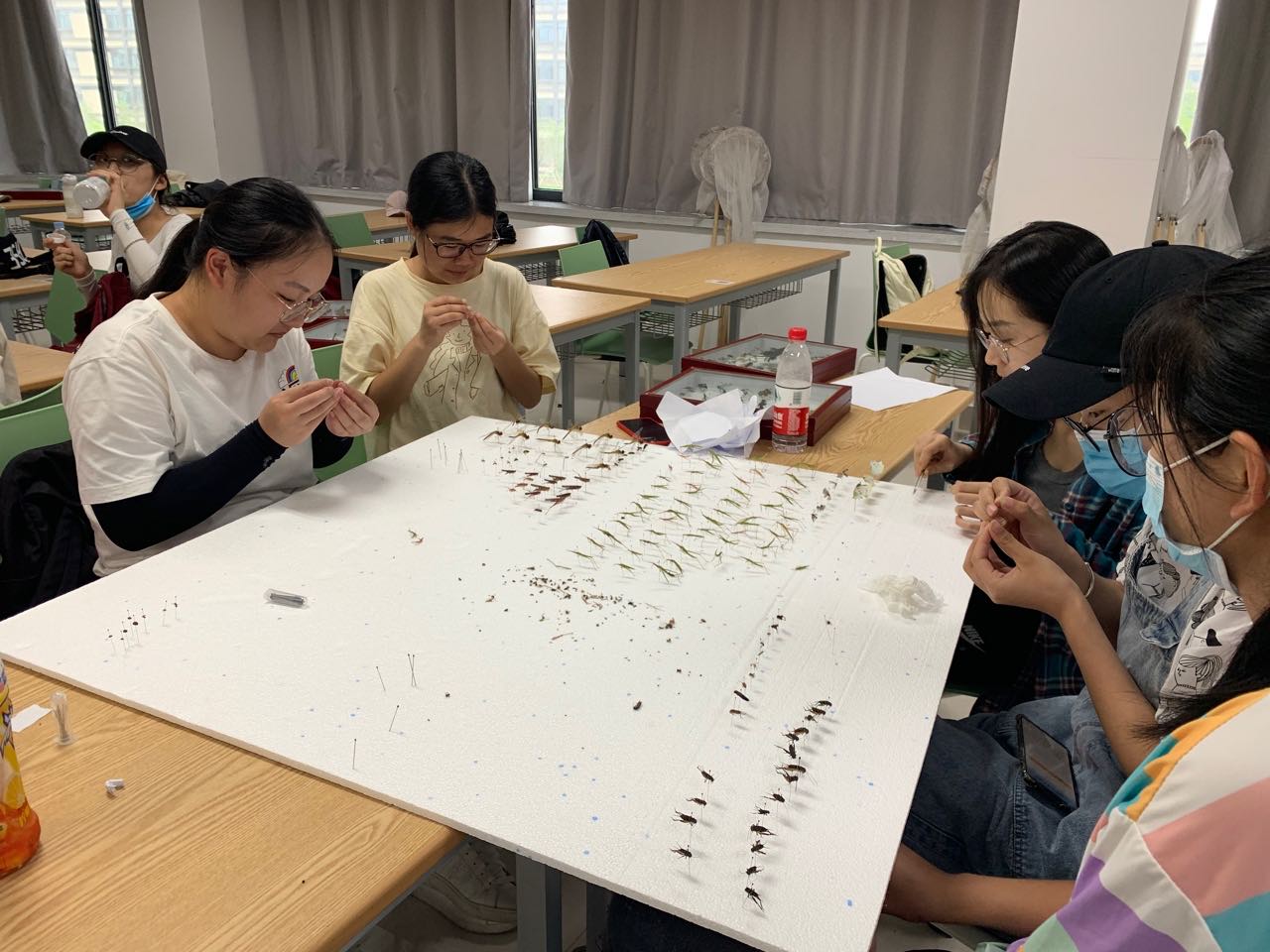在植物学实习中,同学们分为6组前往仓前校区内的不同区块,徒步考察并了解了校园内常见苔藓植物、蕨类植物、裸子植物及被子植物的种类及分布特点,采集了典型的植物样品用于标本制作。在植物标本的制作及确定植物种类的过程中,同学们学习了观察植物重要科属特征及形态的基本方法,结合分类检索表和所学理论知识,进一步辨识和明晰了所制作标本的植物种类,了解了其分布规律及生境特点;初步熟悉了植物学野外实习工作的基本过程,掌握了植物标本的采集、制作、保存等技术,开展了独立辨识植物进行分类的科学尝试。