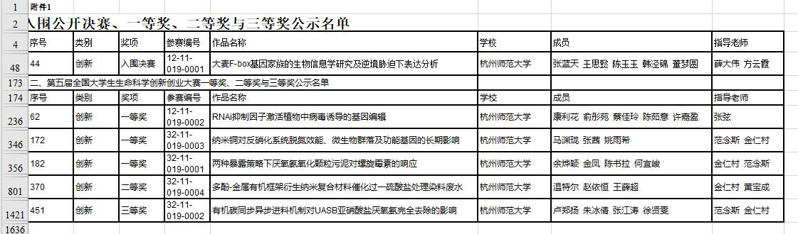 第五届全国大学生生命科学创新创业大赛获奖名单