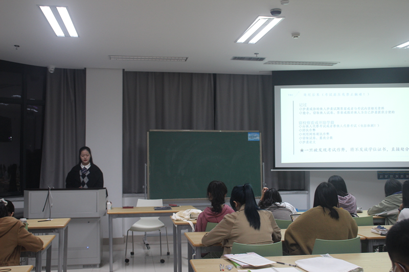 91制片 202班班长金国燕同学正在为同学们宣讲