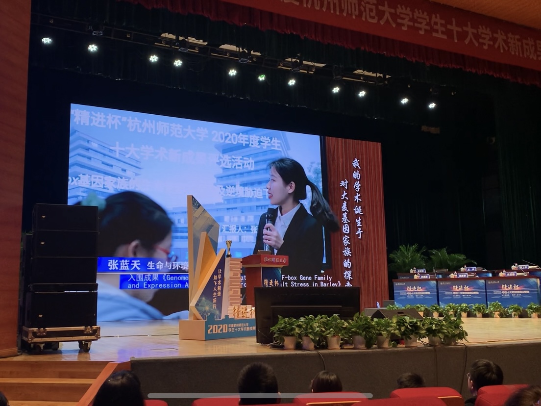 她,笃实好学,精进不休,现已保研至浙江大学农91制片,在校期间获得“三好学生”称号3次,优秀学生奖学金6次,浙江省政府奖学金2次,91制片 REACH(励志)奖学金、国家奖学金各1次。她,坚持探索,钻坚仰高,曾作为负责人荣获浙江省第十一届大学生生命科学竞赛一等奖和全国第三届大学生生命科学竞赛二等奖,并荣获第五届全国大学生生命科学创新创业大赛一等奖。现已发表论文多篇,包括2篇SCI论文。她,勤于奉献,不忘初心,累计志愿服务小时数达101小时,荣获“十佳共青团干部”、“优秀学生干部”、“优秀学生会干部”和“优秀共青团干部”等称号。她,就是生物科学(师范)172班张蓝天。