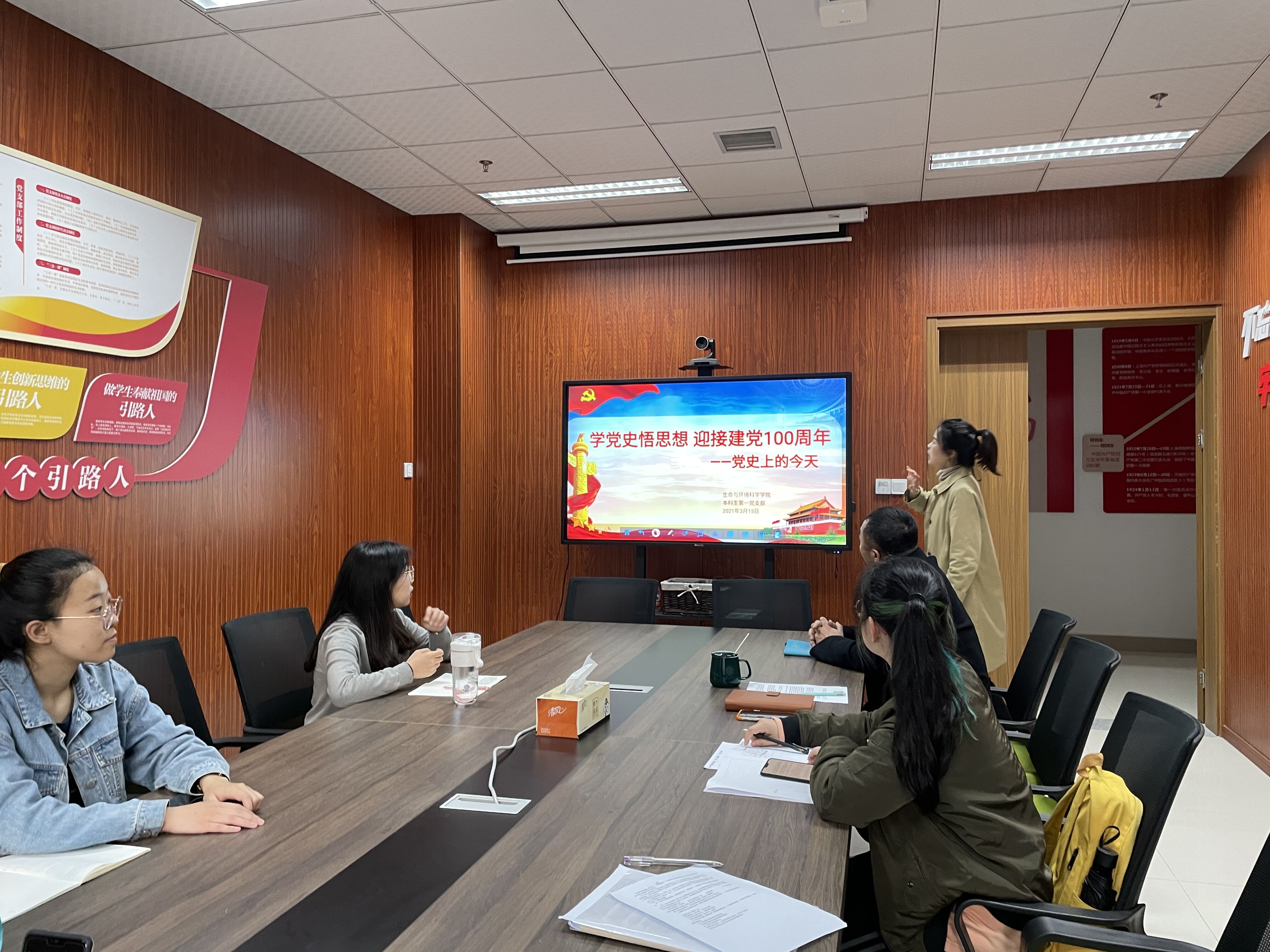 图7 研究生第一党支部在慎园15-311召开“学习百年党史,牢记初心使命”主题活动日