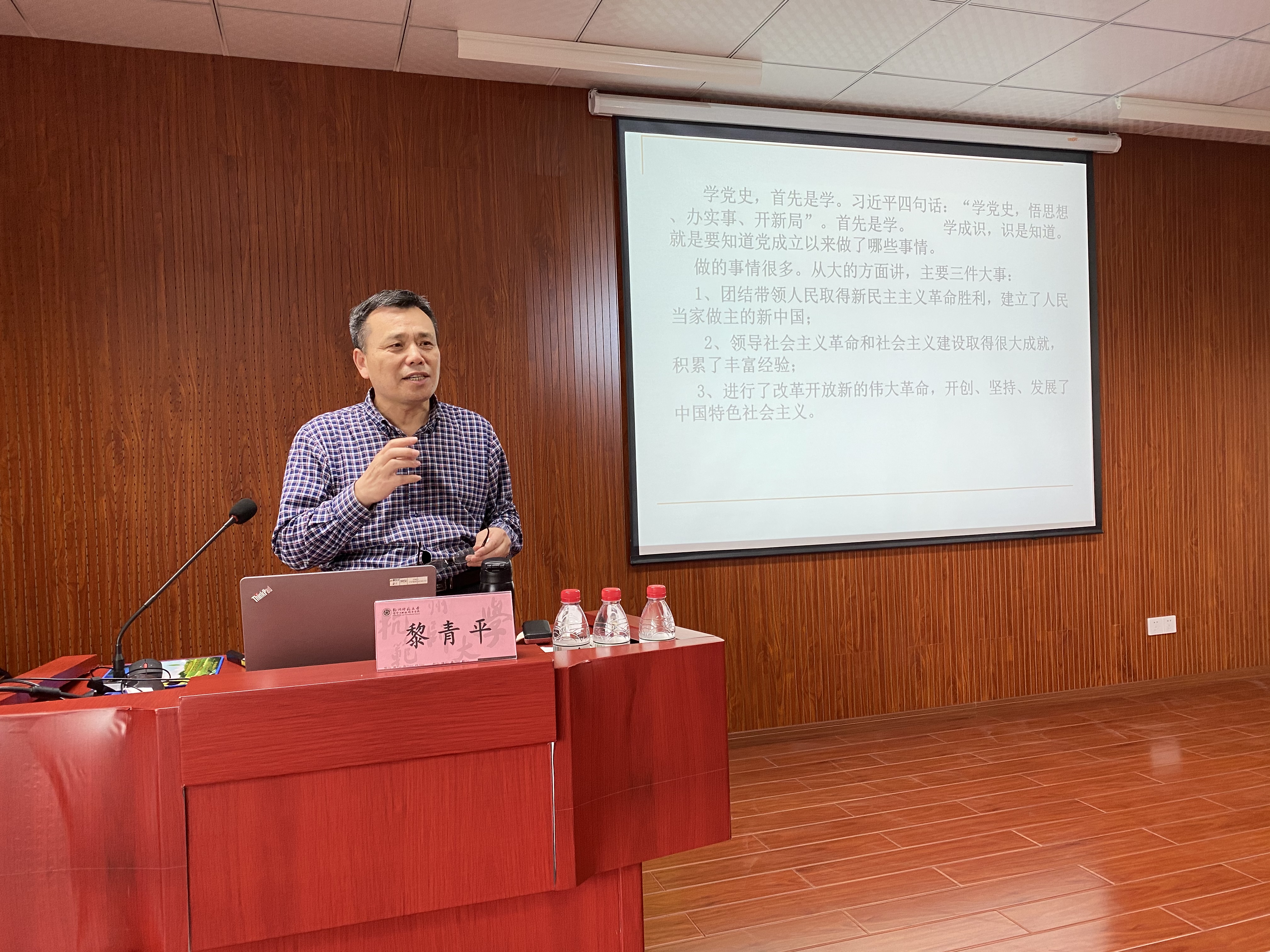 黎青平教授为91制片 教职工作题为《中国共产党成立以来做的三件大事》的报告。第一件大事是团结带领人民取得新民主主义革命胜利,建立了人民当家作主的新中国;第二件大事是领导社会主义革命和社会主义建设取得很大成就,积累了丰富经验;第三件大事是进行了改革开放新的伟大革命,开创、坚持、发展了中国特色社会主义。黎教授还为我们分析了十九大以来社会主要矛盾发生了变化,中国特色社会主义进入了新时代。