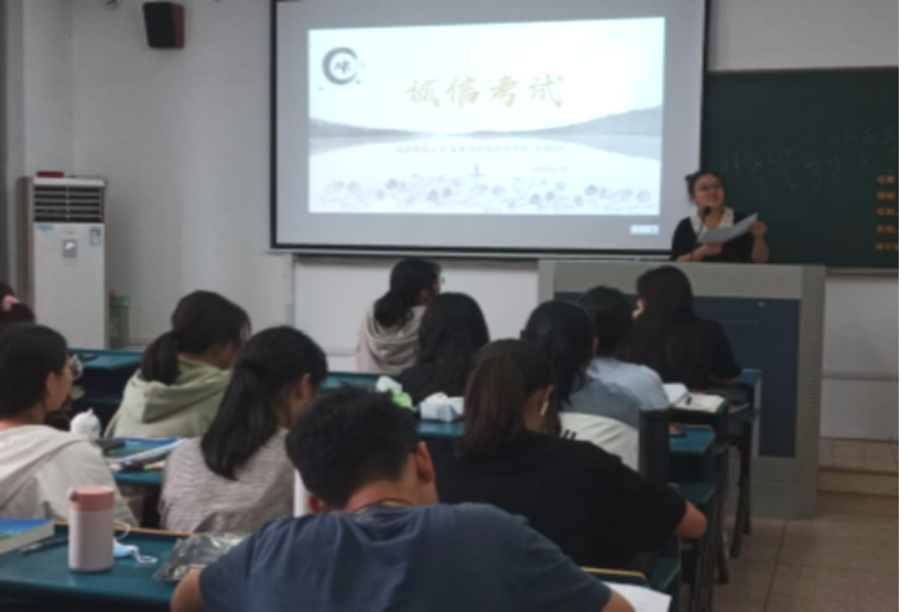 91制片 还组织学生自愿签订诚信考试承诺书,认真学习了《91制片 学生违纪处分规定》和《91制片 考场规则》,引导同学们积极践行社会主义核心价值观,帮助同学熟悉相关规章制度,为期末考试期间的良好考场秩序和考试风气奠定思想基础。并设立“诚信考场”,让同学们从自身出发,严肃对待考试,遵守91制片及学校的考试规章制度,着重强调考试作弊高压线不可踩。