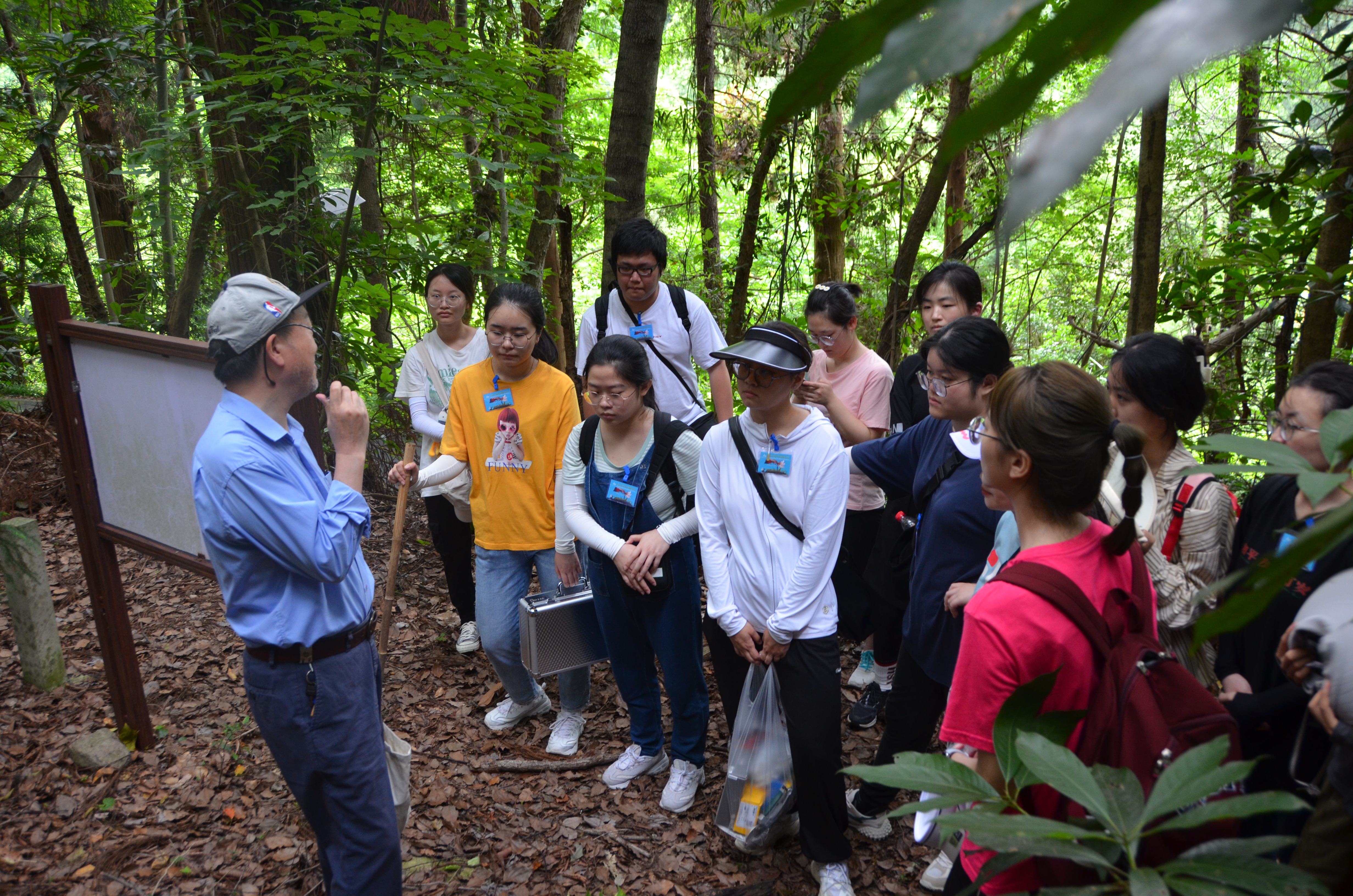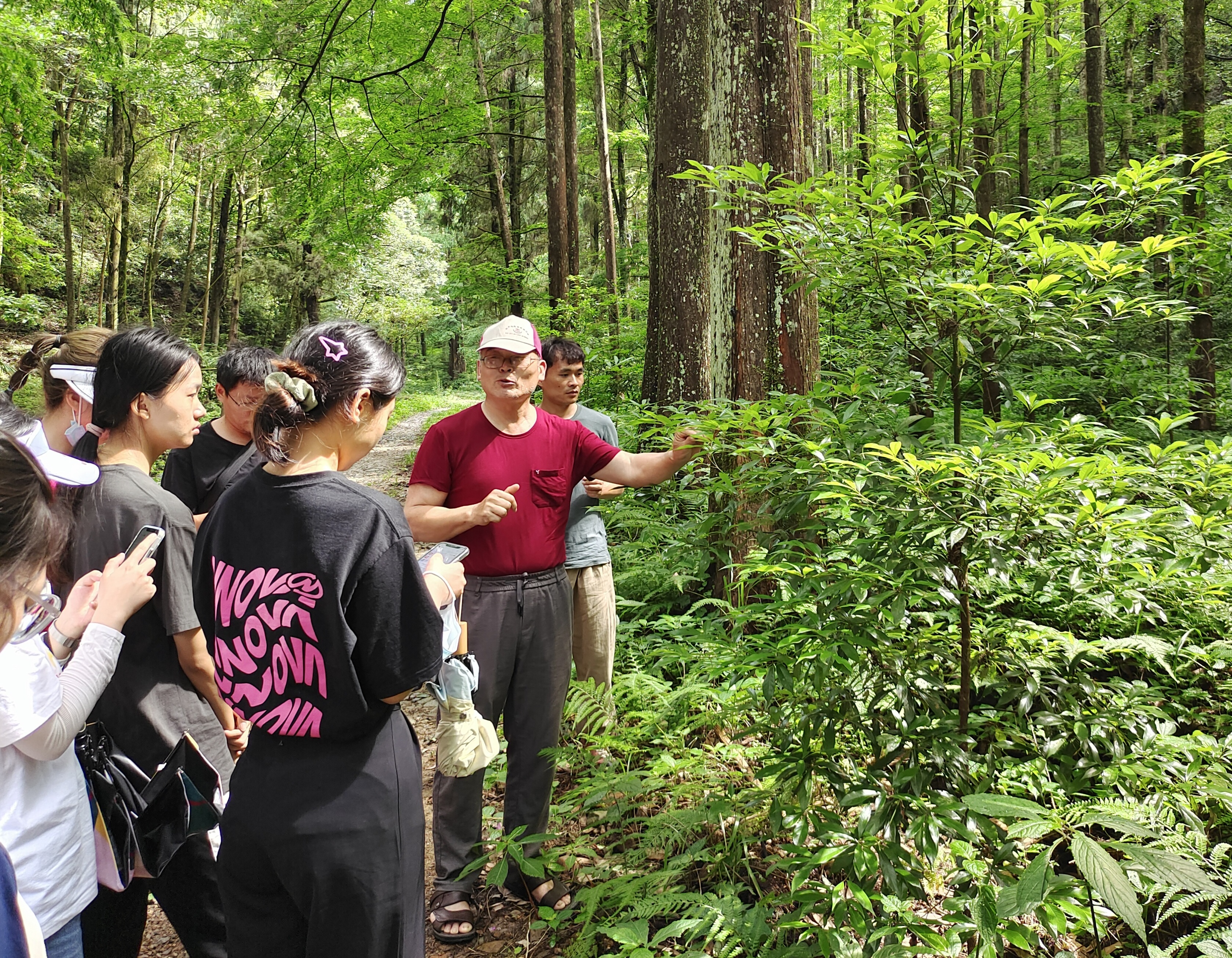 图3 潘老师在建德楠木林介绍林内植物