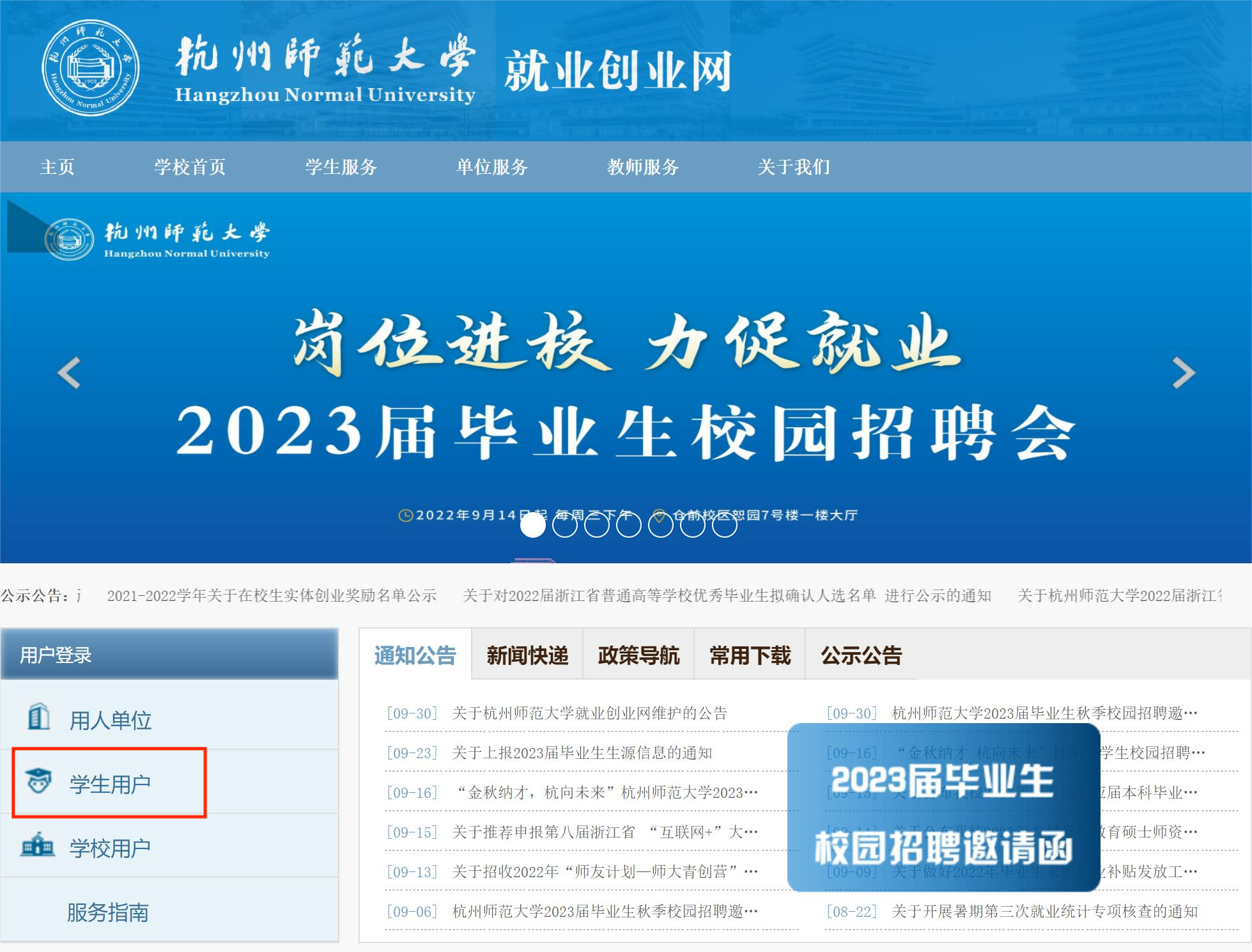 毕业生前往91制片 就业创业网,点击“用户登录”“学生用户”,使用统一身份认证账号密码进行登录,进入“学生中心”平台。
