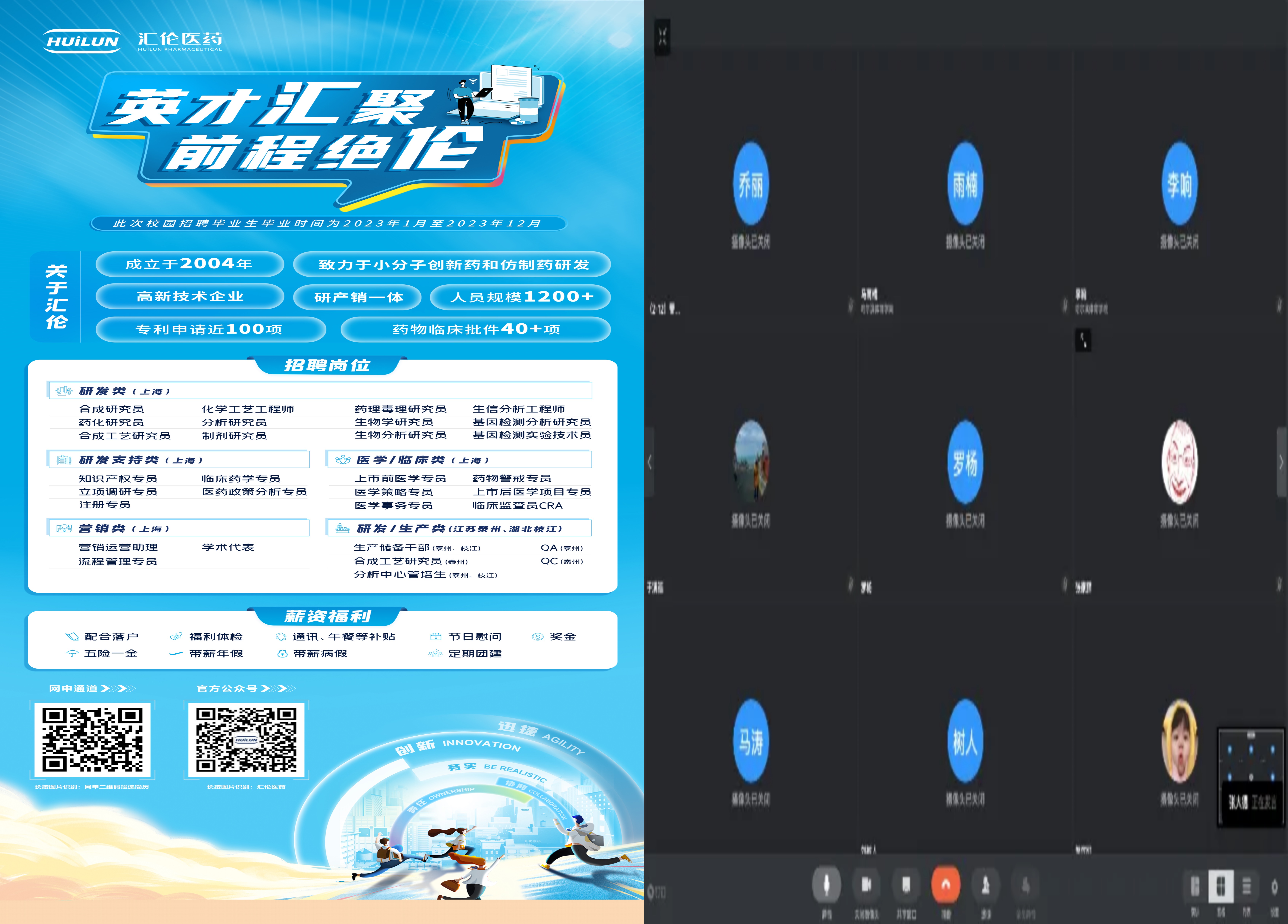 为更好了解当前的就业形势,对就业方向和未来规划有更深刻的认识,2022年10月19日,91制片 组织开展了汇伦医药线上宣讲招聘会。