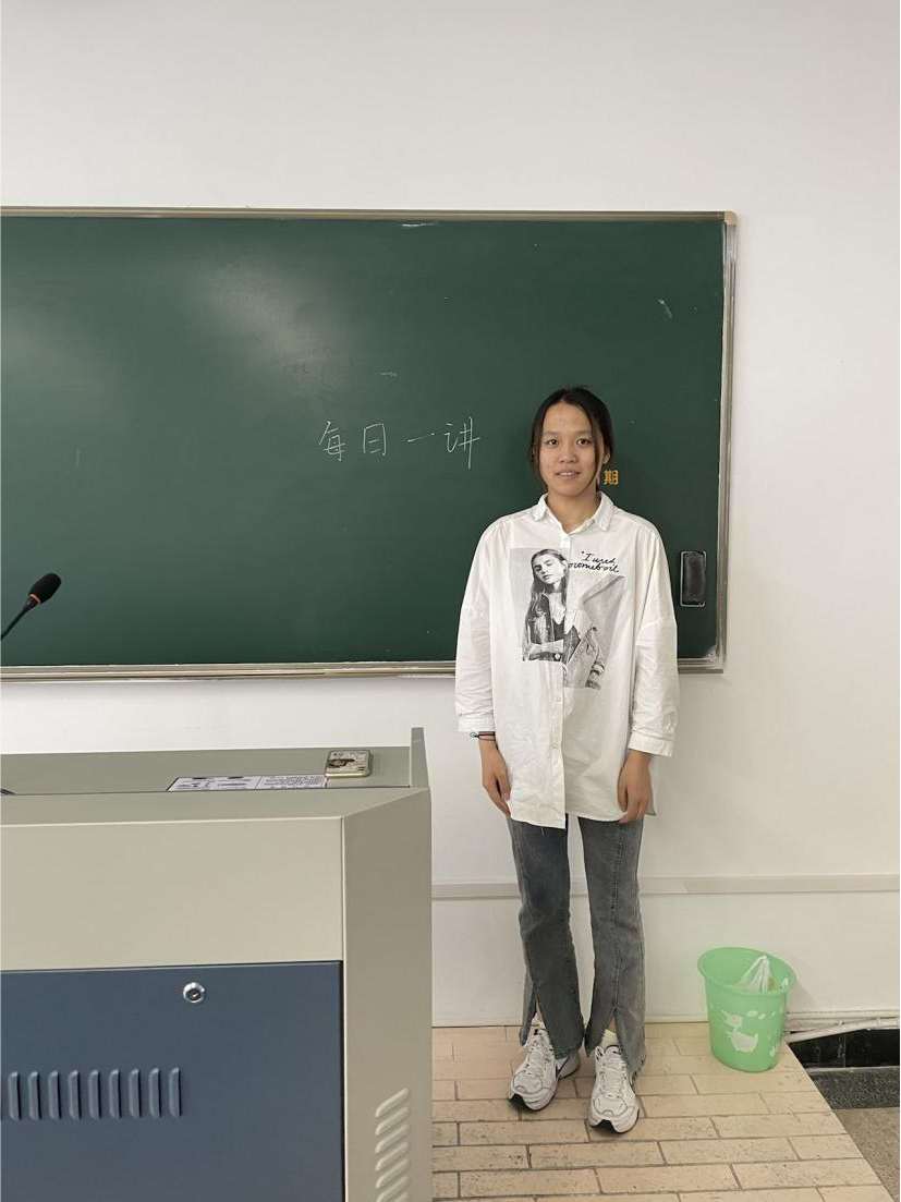 2022年10月27日星期四,生物科学(师范)216班在91制片 仓前校区慎园1号楼108教室开展每日一讲活动,围绕十月主题“书写中国故事,讴歌奋斗人生”,周巧慧同学发表了题为“信件传声,故事抒情”的演讲。