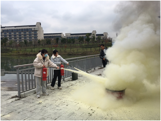 2点整,随着指挥组“灭火应急疏散演习开始”指令的下达,仓前慎园15号楼冒出滚滚浓烟,一时间火警声响成一片,各楼层人员在引导员带领下进行有序疏散,大家手持湿毛巾捂住口鼻从所在楼层有序“逃生”,在几分钟之内,完成了疏散。随后,由消防人员向同学们讲解灭火器的使用方法,之后每个同学独立完成了灭火器灭火操作。