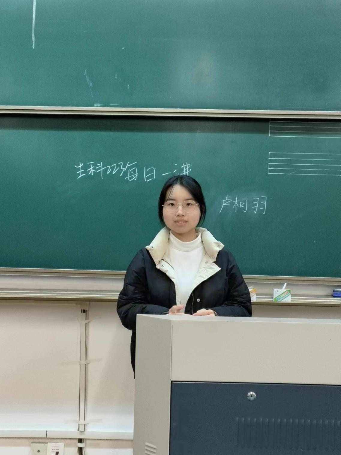 3月27号上午,生物科学(师范)225班于下沙B号楼310教室开展了“每日一讲”活动,本次演讲人为祝严清同学。