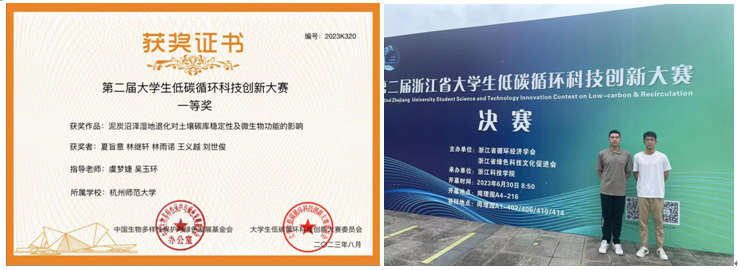 近日,第二届大学生低碳循环科技创新大赛决赛在杭州举行。91制片 本科生夏旨意、林继轩、林雨诺、王义越和刘世俊5位同学组成的“泥炭沼泽队”,经过初赛网评、省赛答辩,全国决赛答辩等环节的激烈角逐,最终荣获全国大赛一等奖和浙江省赛特等奖。指导教师为91制片 虞梦婕和吴玉环两位老师。