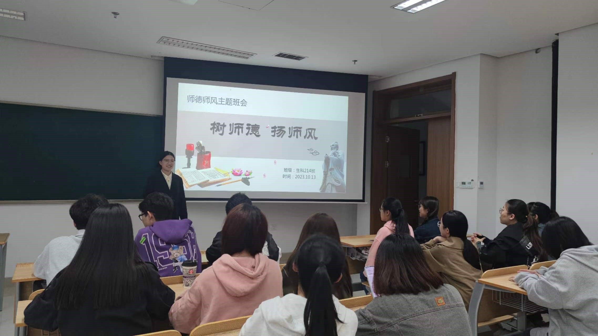 214班的同学们进一步了解了师德就是教师具备的最基本的道德素养;师风,是教师这个行业的风尚风气。爱岗敬业,教书育人,为人师表,诲人不倦,这都是师德。作为未来的人民教师,我们应从现在开始,重视自身品德建设,从小事做起,自觉遵守师德师风规范,为祖国的教育事业添砖加瓦。