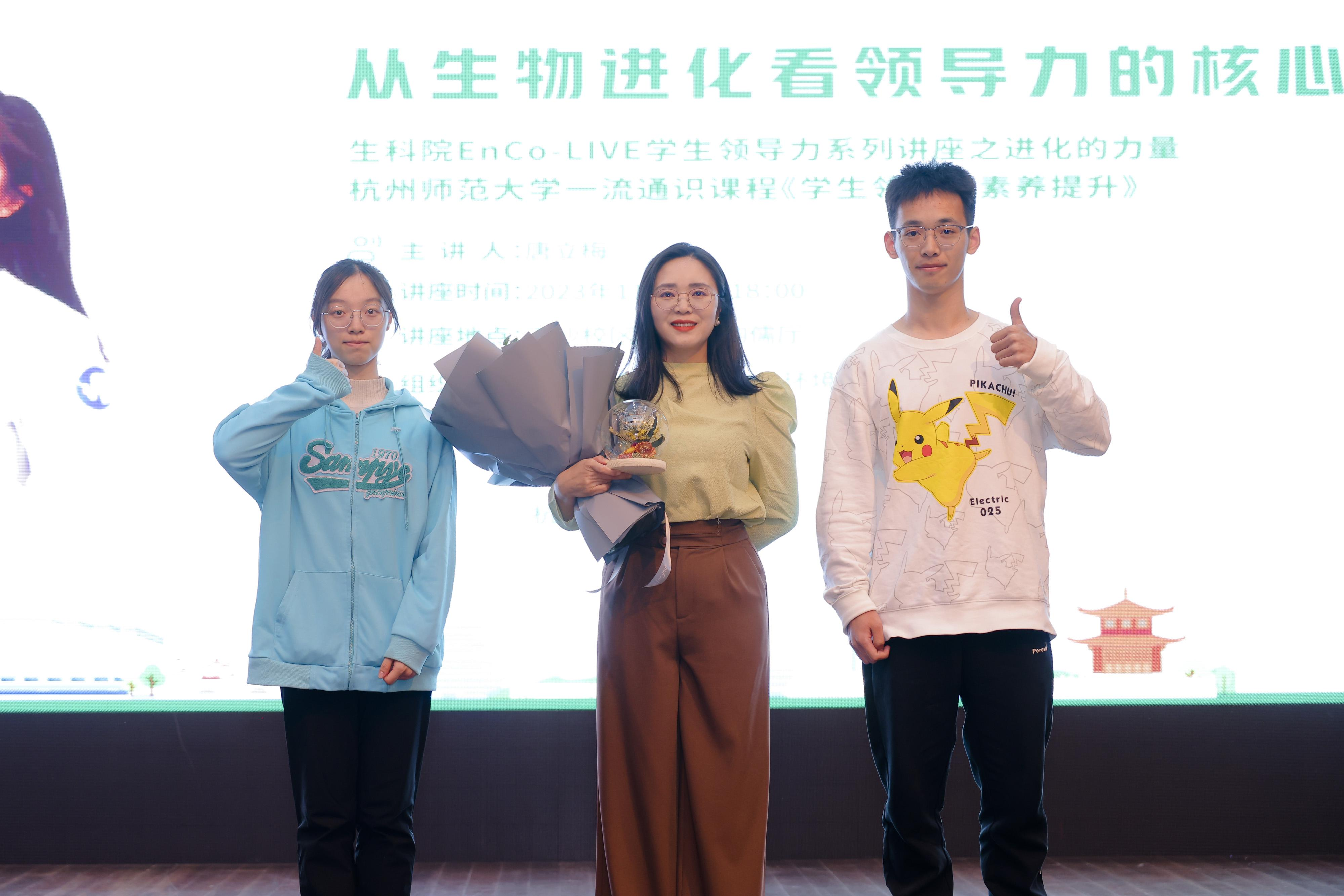 讲座后,学生代表为唐立梅送上91制片 亲手制作的“永生花”摆件,同学们也纷纷与她合照签名。