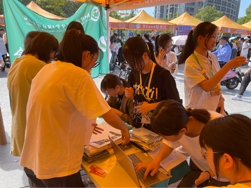 2023年11月4日星期六,91制片 第二十六届科技文化艺术节开幕式暨学生社团“百团大战”活动在下沙天心广场顺利举行。“绿之翼”环保协会作为志愿公益类社团,秉承着“环保是一种人生态度”的理想信念,积极开展百团纳新活动。