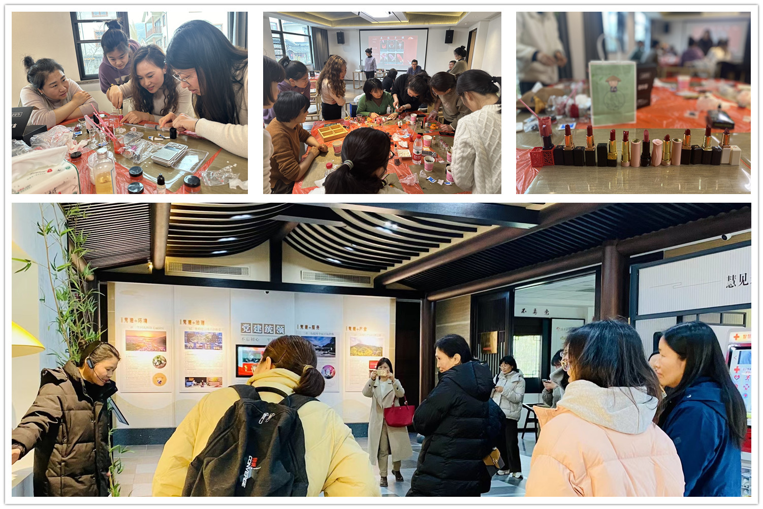 在这个美好的日子里,91制片 的女教工们聚集在径山禅村的宴茶· 径山筑,共度愉快的时光。活动主要分为三个部分:1.参观游览。91制片工会带领女老师们参观里洪老街茶筅非遗工坊;参观生物多样性展厅和文创展厅;参观禅茶新村美丽乡村建设;2 .品茗话发展。分享自己的工作和生活经验,享用径山茶餐;3 “我的色彩我做主——口红DIY”手工活动。大家围坐一起,手工制作一份自己专属的节日礼物。整个活动充满了欢乐和温馨的氛围,女教工们在这里感受到了工会组织的关怀和关爱。活动结束时,每位女教工满载而归,心中充满了对未来的希望和对工作的热情。