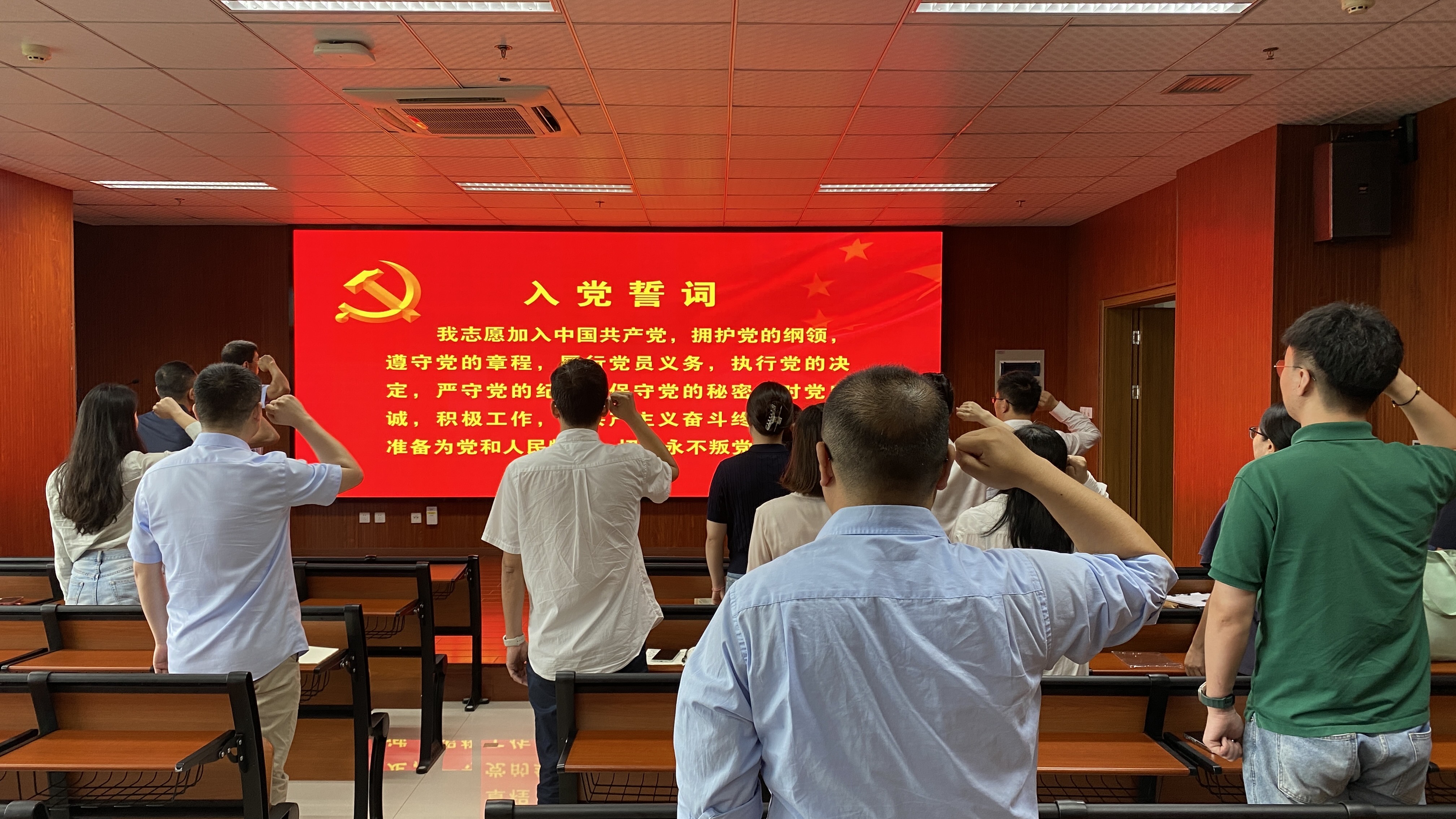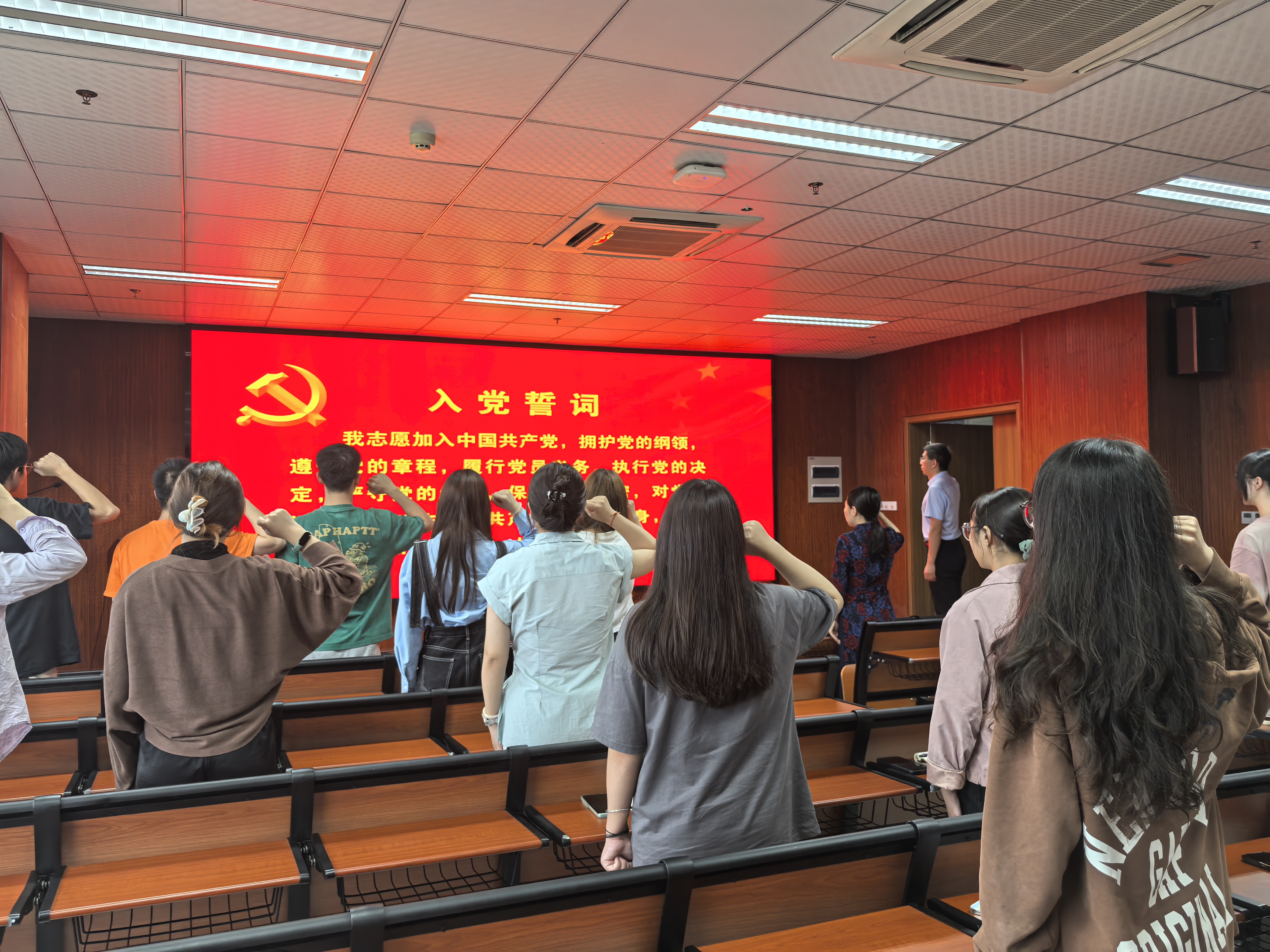 “预备党员进行集体宣誓与廉洁教育活动”方面:2024上半年30名30多名预备党员高举右拳庄严宣誓,表达出对党的忠诚、为共产主义事业奋斗终身的决心。廉洁教育活动让党员们又一次接受了党性教育,张书记和王书记勉励各位同学坚定初心使命,脚踏实地砥砺前行,将来走向工作也要严守自廉洁自律意识,做一名合格的共产党员。