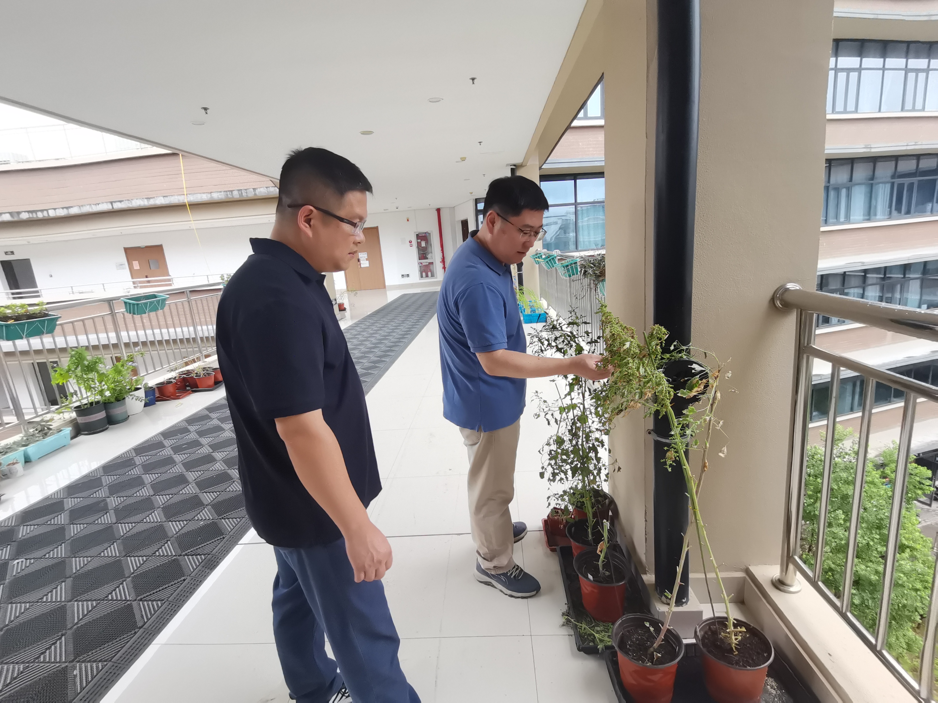 7月25日一早,薛大伟院长带队对91制片各实验室走廊、屋顶、室外大棚等重点防范部位进行仔细检查,对检查中发现的安全问题及隐患进行了现场整改,将14号楼和16号楼放在走廊台阶上的杂物一一移开,叠放在高处的桌子搬离。