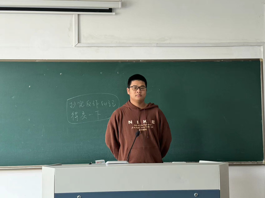 而后,他指出要想书写青春华章就应具备四项基本要求:1. 以实际行动向祖国献礼;2. 用知识武装自己;3. 要坚定我们的信念;4. 要勇于接受挑战。作为新时代新青年,不仅要在日常生活中严谨治学、精益求精,更重要的是要培养个人的道德品质,注重自我的全面发展,树立正确的人生观和价值观。与此同时我们也要顺应时代的发展,积极对未来进行合理的规划。