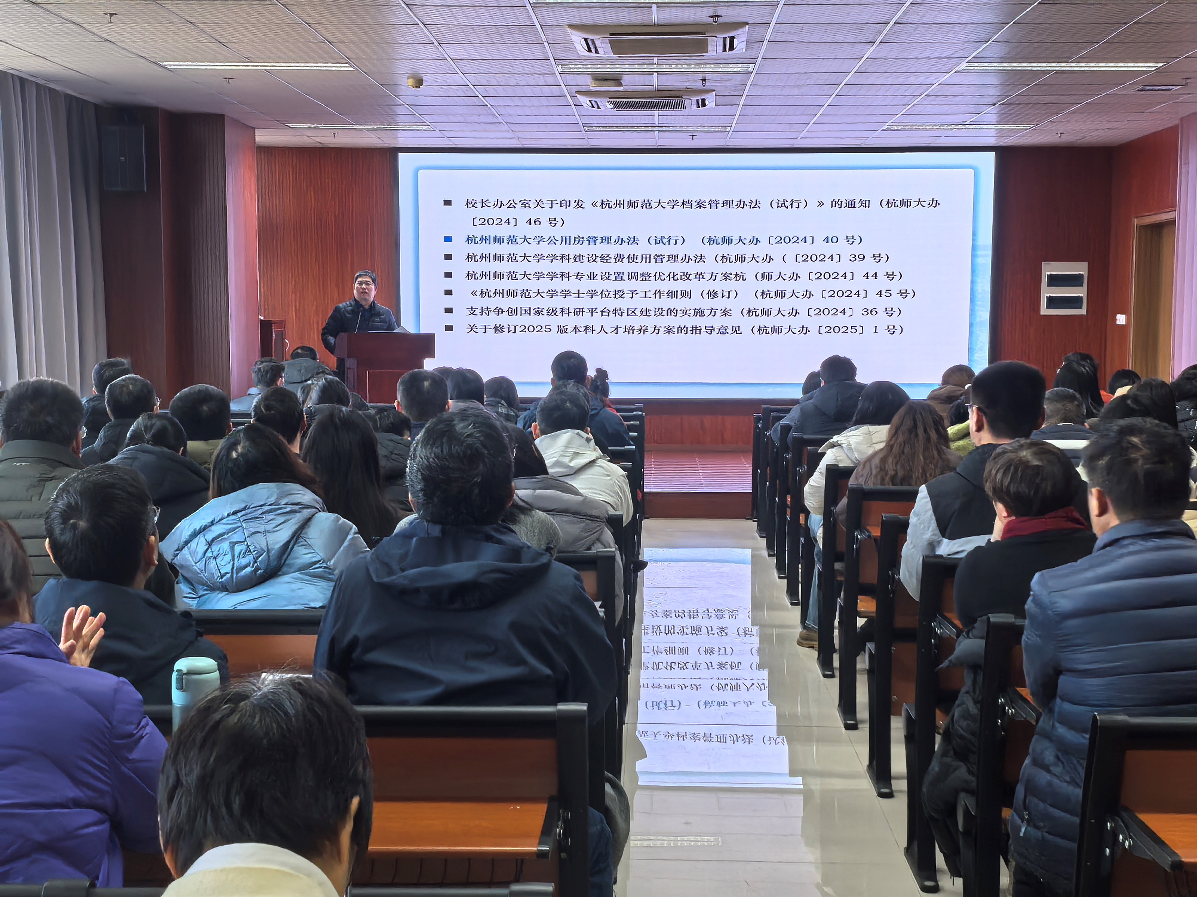 随后,江齐里从意识形态、党风廉政、师德师风和综合治理等方面进行了工作部署。薛大伟从91制片国家级人才引荐、2025年国家自然科学基金申报、学生就业、期末考试工作、实验室安全、学术道德和绩效工资征求意见等方面进行工作部署,并与会教职工一起重点学习了学校重要文件。